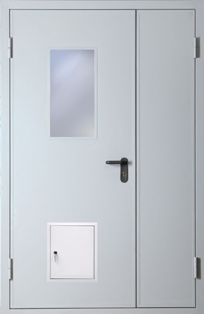 Полуторапольная противопожарная дверь EI 60 со стеклом и стыковочным узлом 06