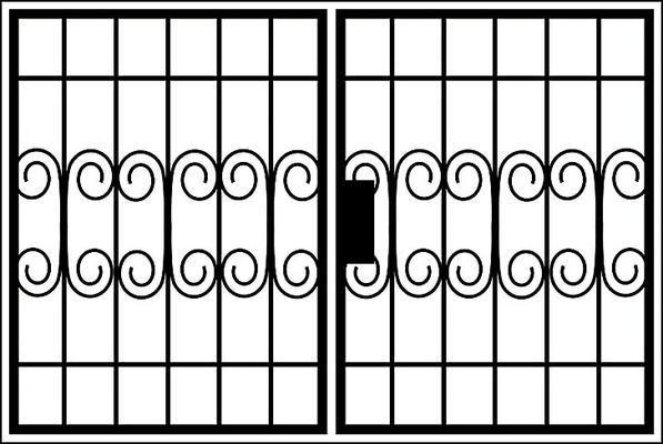 - Изделие комплектуют петлями и замком. Запирающее устройство может быть навесным или врезным. Для замка нужен специальный карман. Расстояние между прутьями распашной решетки должно быть не больше 10-15 см.